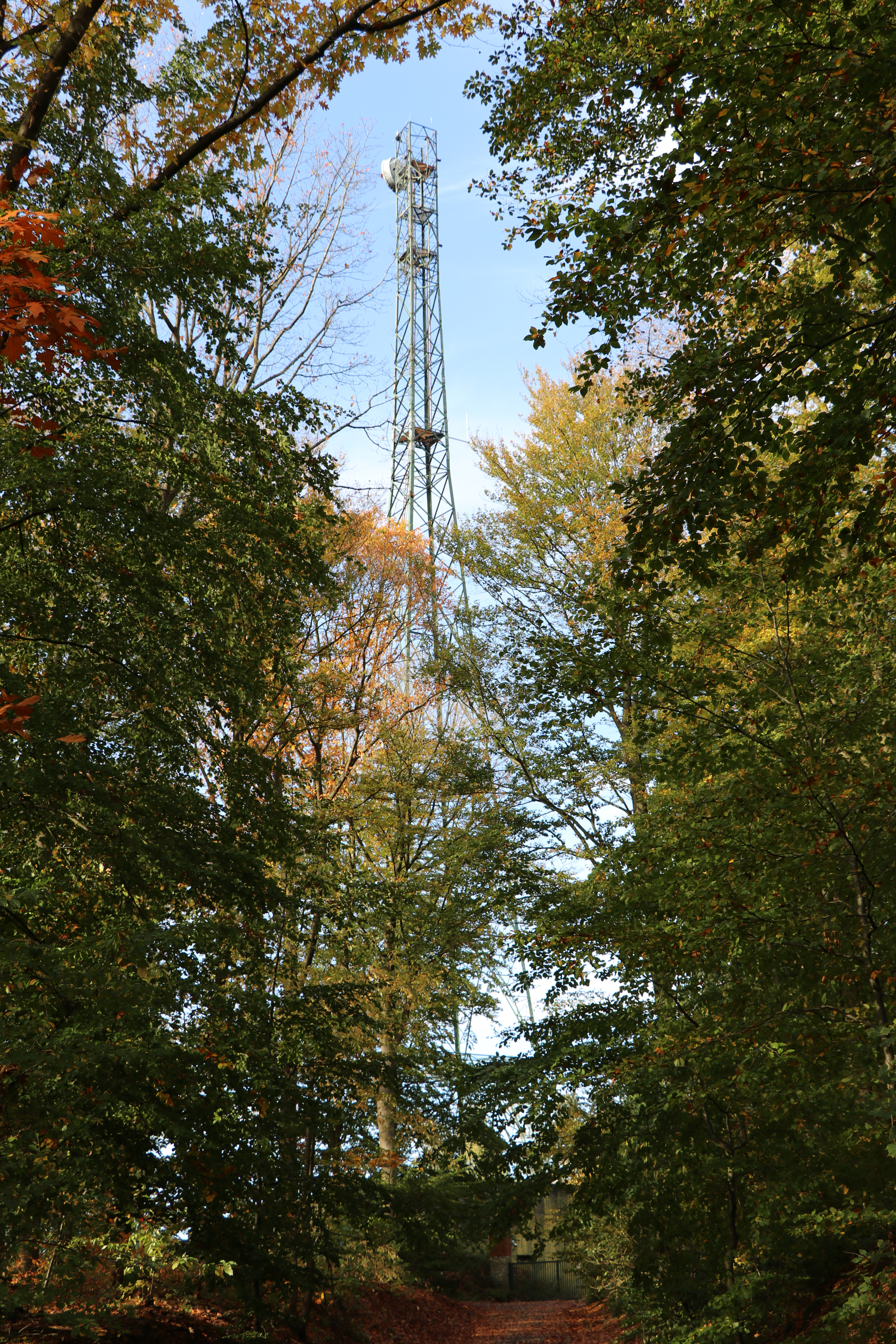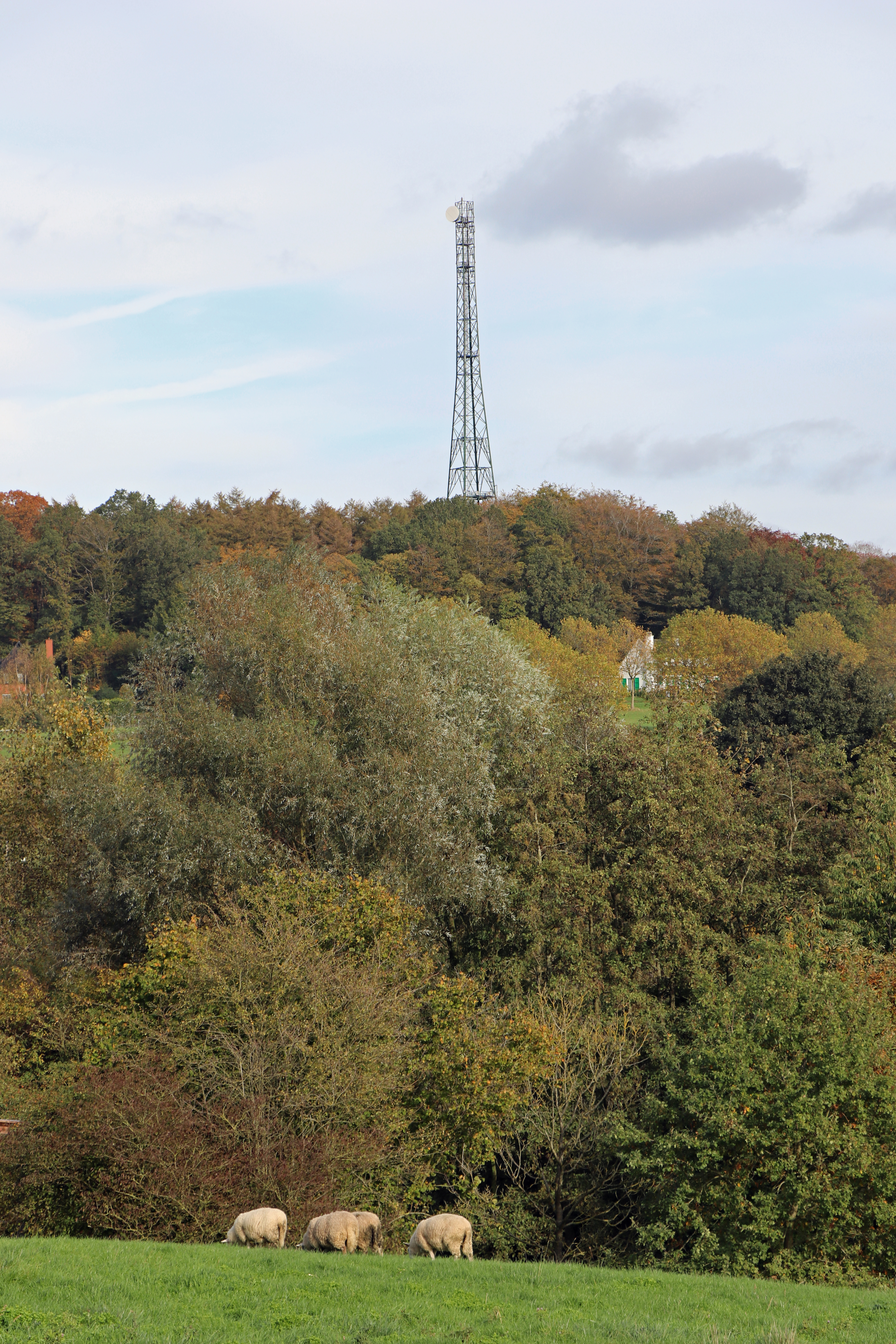 Pas ‘s avonds realiseer ik me dat ik de verkeerde pyloon heb gefotografeerd. Het exemplaar op de bovenstaande foto’s dient een heel ander doel: digitale radiosignalen sturen naar Vlaanderen. Dankzij een toren op Waals grondgebied kunnen Vlamingen in Ronse en Geraardsbergen naar de DAB-radio luisteren.